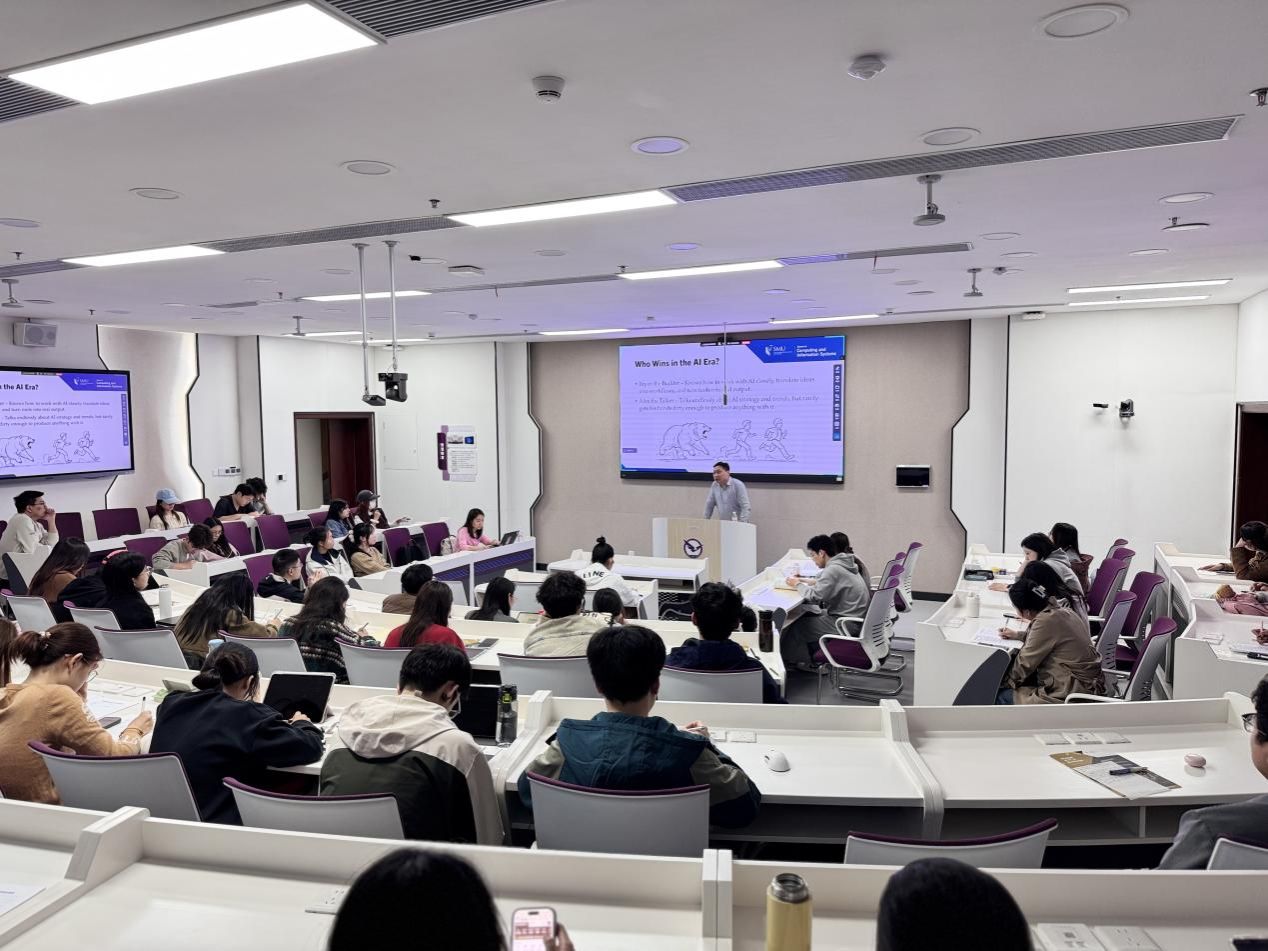 (通讯员:谢思思 努尔夏提·居勒提)4月9日下午,新加坡管理大学计算机科学(教育)系副教授、MITB(人工智能方向)项目主任Dai Bingtian和MITB项目校企合作经理Tracy Ren来学院交流。Dai Bingtian副教授聚焦“AI时代的职场:如何与人工智能共同进化”这一前沿议题,做客我院新一期“鹰击长空”国际生涯规划讲堂,讲座在崇信楼108智慧教室成功举办。本次讲座吸引了众多关注前沿科技与职业发展的本科生和研究生到场聆听,学工办主任努尔夏提·居勒提主持活动。学院副院长侯俊东、管理科学与工程系教授朱镇参加交流。
