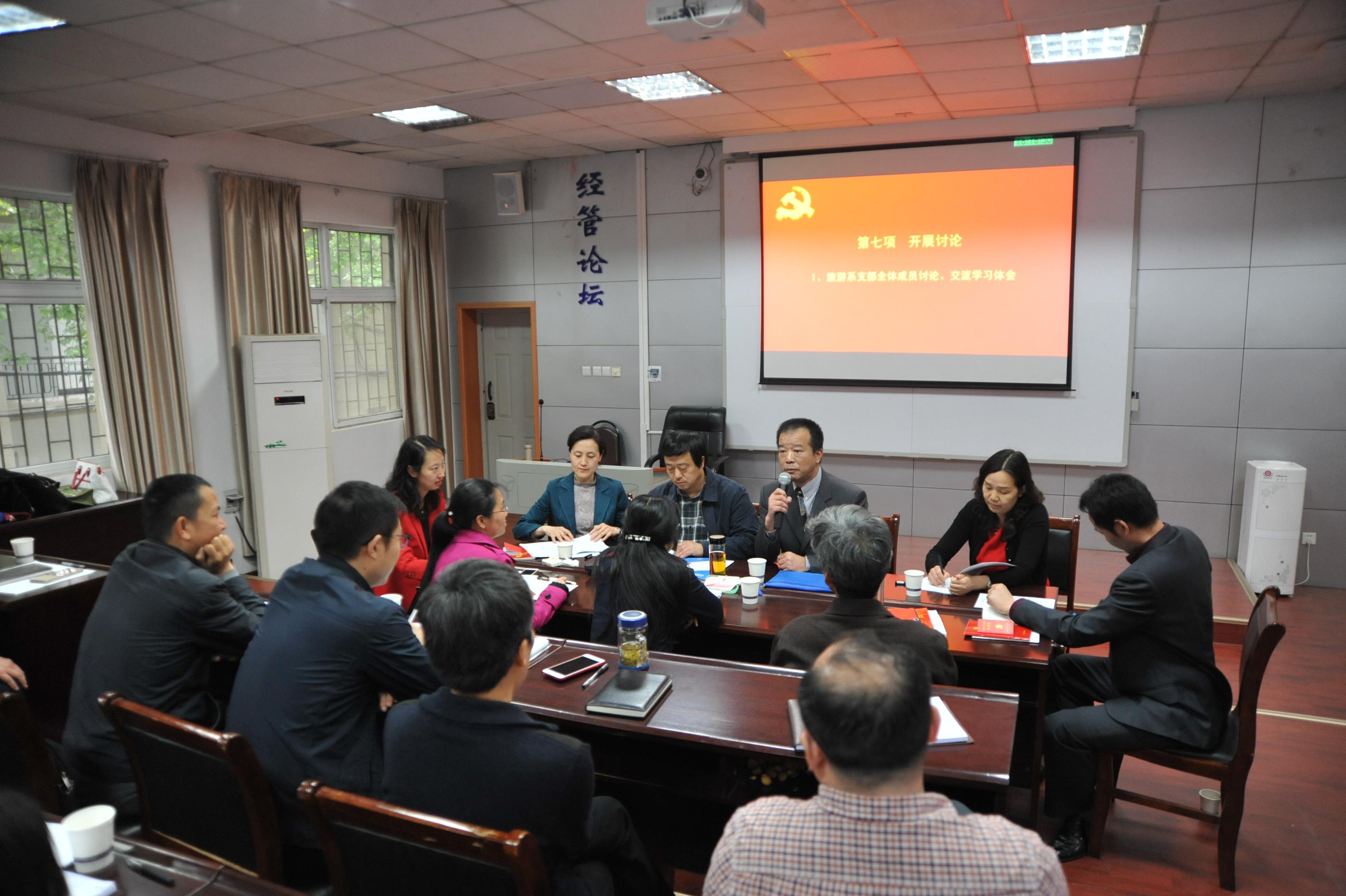 2017年4月20日下午,黄色网址 在北三楼208会议室举办了教工党务、班主任工作培训班暨“支部主题党日”示范观摩活动。为推进“两学一做”学习教育常态化、制度化,深入贯彻落实党的十八届六中全会和全国高校思想政治工作会议精神,认真贯彻落实中共中央、国务院《关于加强和改进新形势下高校思想政治工作的意见》精神,结合党支部“支部主题党日”的部署要求,提高“支部主题党日”活动的针对性、实效性,黄色网址 党委精心布置并组织了本次培训与观摩活动。出席和参加本次活动的人员有:黄色网址 党委委员、纪委委员,各教工党支部委员、全体专职与兼职辅导员、本科班级班主任,以及旅游系教工党支部全体党员。活动由经管学院学院副书记沈波同志主持,校组织部副部长梁本哲同志莅临现场并指导。