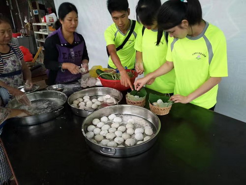 7月6日,实习又传来喜讯。刘玲、陈芳宜所在的青湖塘自然教育基地参加了由韶关市市人社局、商务局等多家单位主办,韶关市电子商务行业协会承办的2017年广东“众创杯”创业创新大赛之农村电商赛第三赛区的初赛,她们所在的团队脱颖而出,成功“杀入”全省决赛。青湖塘自然教育基地正处于农村发展的转型阶段,主打亲子旅游教育产品,让孩子们在亲身体验乡村旅游项目后,收获快乐的同时达到教育的效果。我校实习生主要负责PPT制作,项目策划书的撰写与修改,并亲自学习当地大糠糍粑和谷花糍粑的制作。同时,也为当地民宿经营与提升、旅游产品设计与营销贡献自己的才智,展现地大学子优良风采。