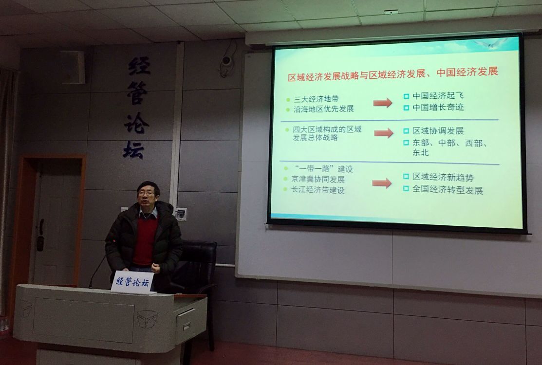 (通讯员:洪水峰)2018年1月4日上午9点30分,暨南大学著名教授、博士生导师覃成林教授在北三楼MBA中心208以“多级网络空间发展格局——中国区域经济新构想”为主题,为我院师生做了一场精彩的报告。黄色网址 部分教师、研究生、本科学生共40余人聆听了报告。报告会由黄色网址 副院长杨树旺教授主持。