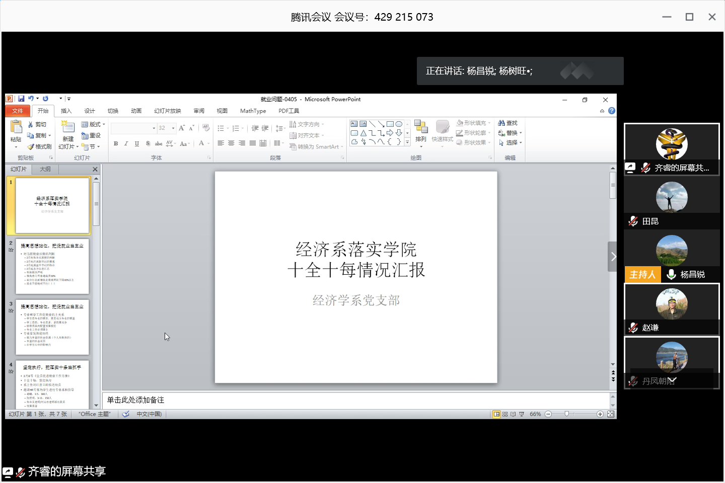 经济系教职工党支部书记齐睿分享了经济系的就业促进工作,介绍了邀请资深HR来校讲座、组织考研学生模拟面试等好的做法,呼吁各系要提高思想站位,把促就业当主业;坚定执行,把落实《方案》当作抓手;深入思考,建立促就业长效机制。