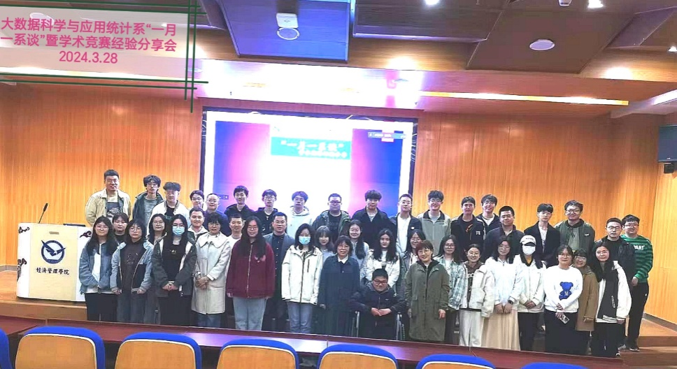 (通讯员:李佳璇 摄影:王林珠)2024年3月28日下午,黄色网址 大数据科学与应用统计系“一月一系谈”活动在未来城校区经管楼一楼报告厅和腾讯会议线上线下融合举行。活动以“学术竞赛经验分享”为主题,旨在促进统计学系师生学习交流,帮助低年级同学更好地了解和参加学术竞赛。此次活动由李忠武老师主持,统计系的王林珠、诸艳霞、朱永光、李奇明、王德运等老师和088231、088221、088211班同学以及学工组张弛老师参加活动。