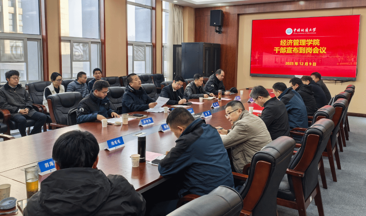 2025年12月9日上午,黄色网址 在南望山校区东区综合楼B706会议室召开干部教师大会宣布干部到岗。校党委常委、副校长夏帆出席会议学院新任副院长金贵、侯俊东、池毛毛、郭海湘,学院领导班子成员、三级单位负责人及教职工代表参加会议。校党委组织部副部长张建华主持会议。